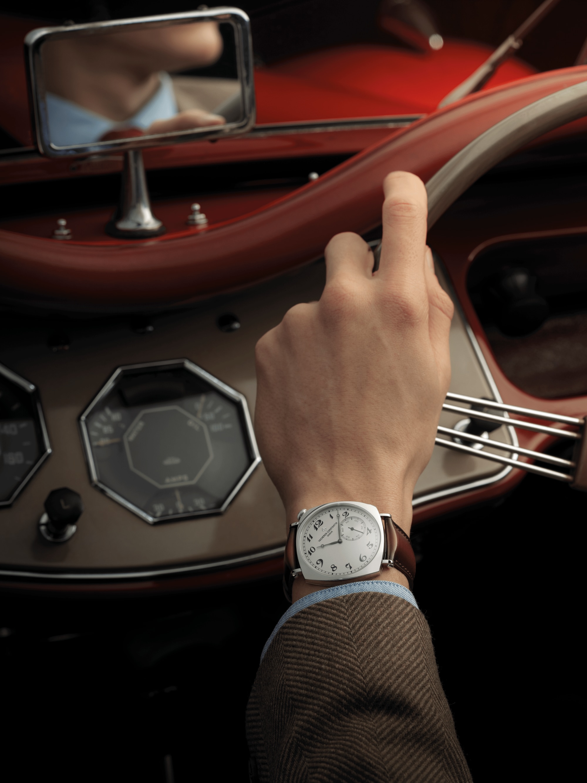 The first thing that makes this watch unique is obviously the dial. Unlike any other watch the dial is tilted to allow a driver to see the time without having to rotate the wrist: