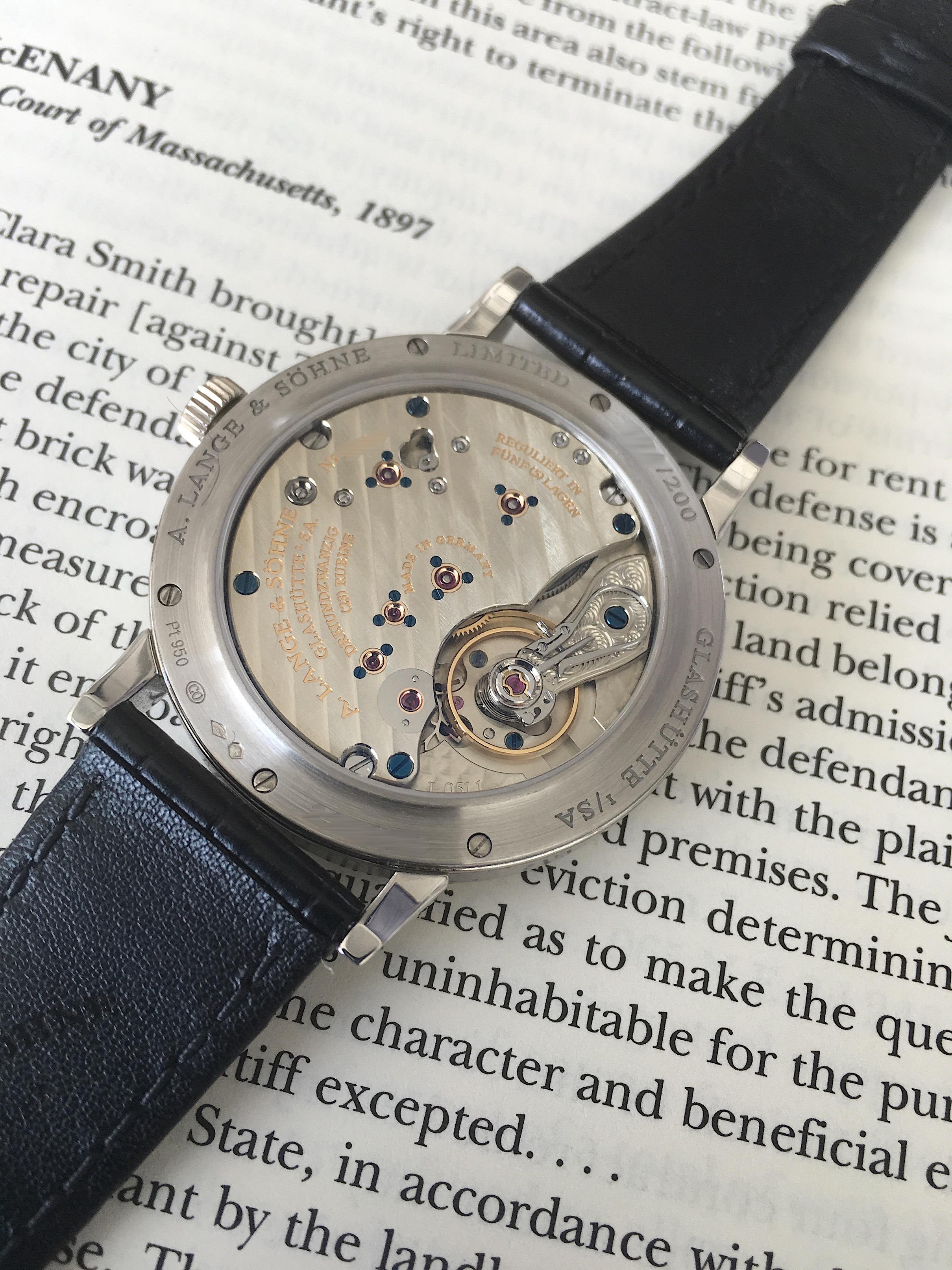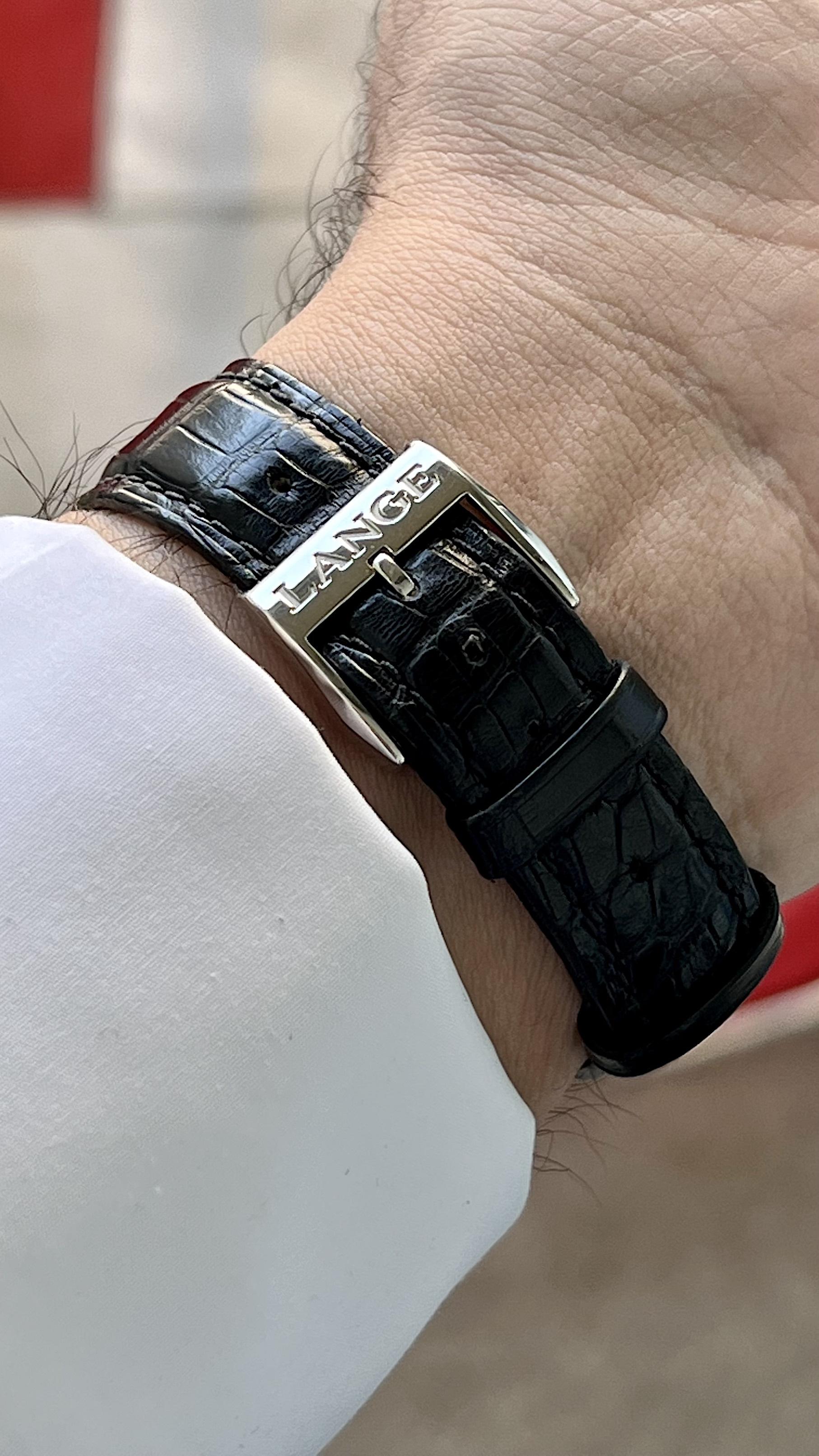 The pin buckle clasp in platinum with the engraving “LANGE” is very comfortable (I found deployant clasp a hit or miss even in many high-end brands). On the wrist the watch is very comfortable, despite the platinum the total weight including the strap is of just 103 grams.