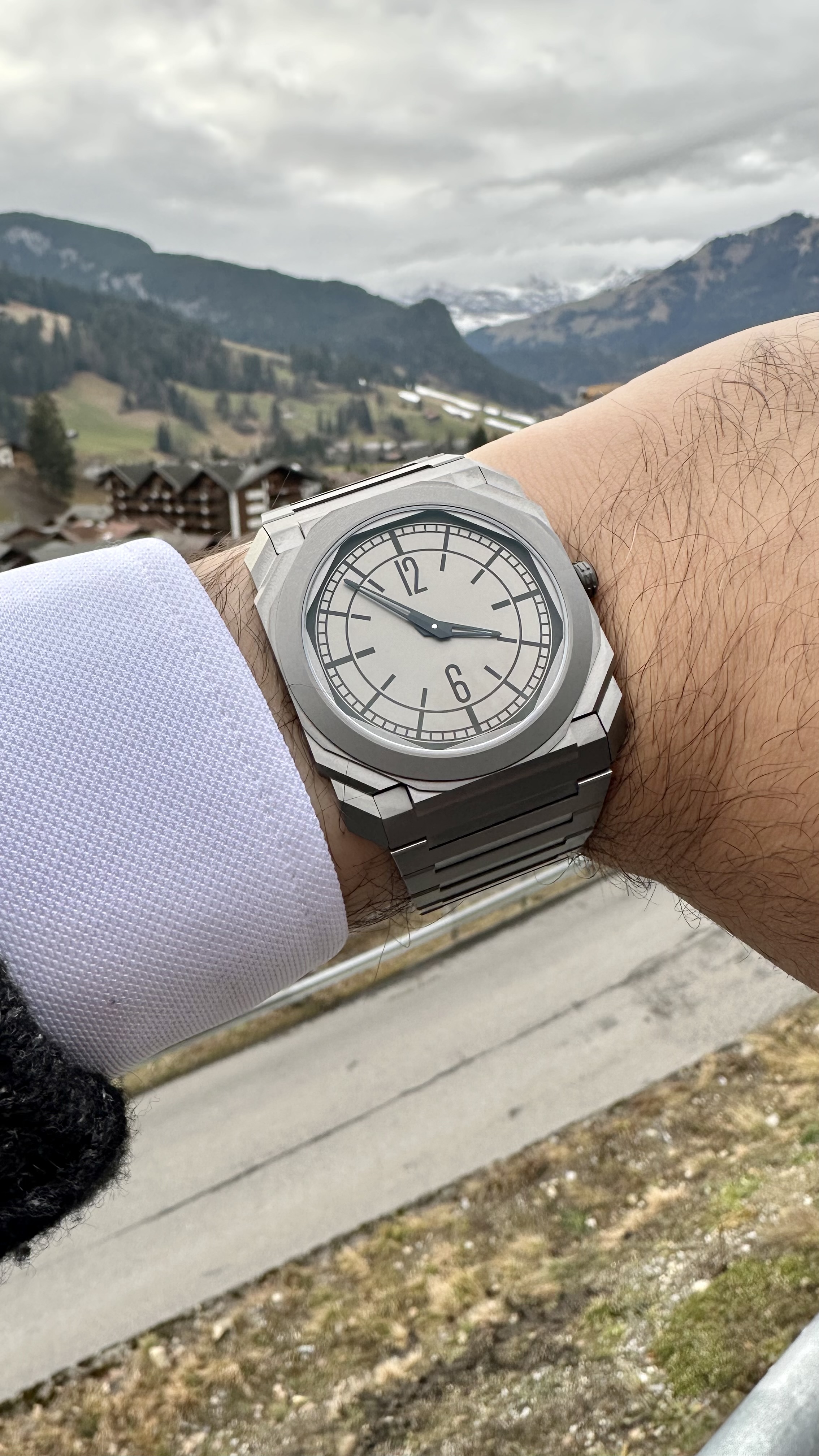 As we can see below, comparing it with the previously reviewed Bulgari Octo Finissimo Revolution limited edition, the case and bracelet are pretty much identical, but the dial creates a distinct and unique design language: an intersection between past and present, created by true experts of vintage designs and watches.