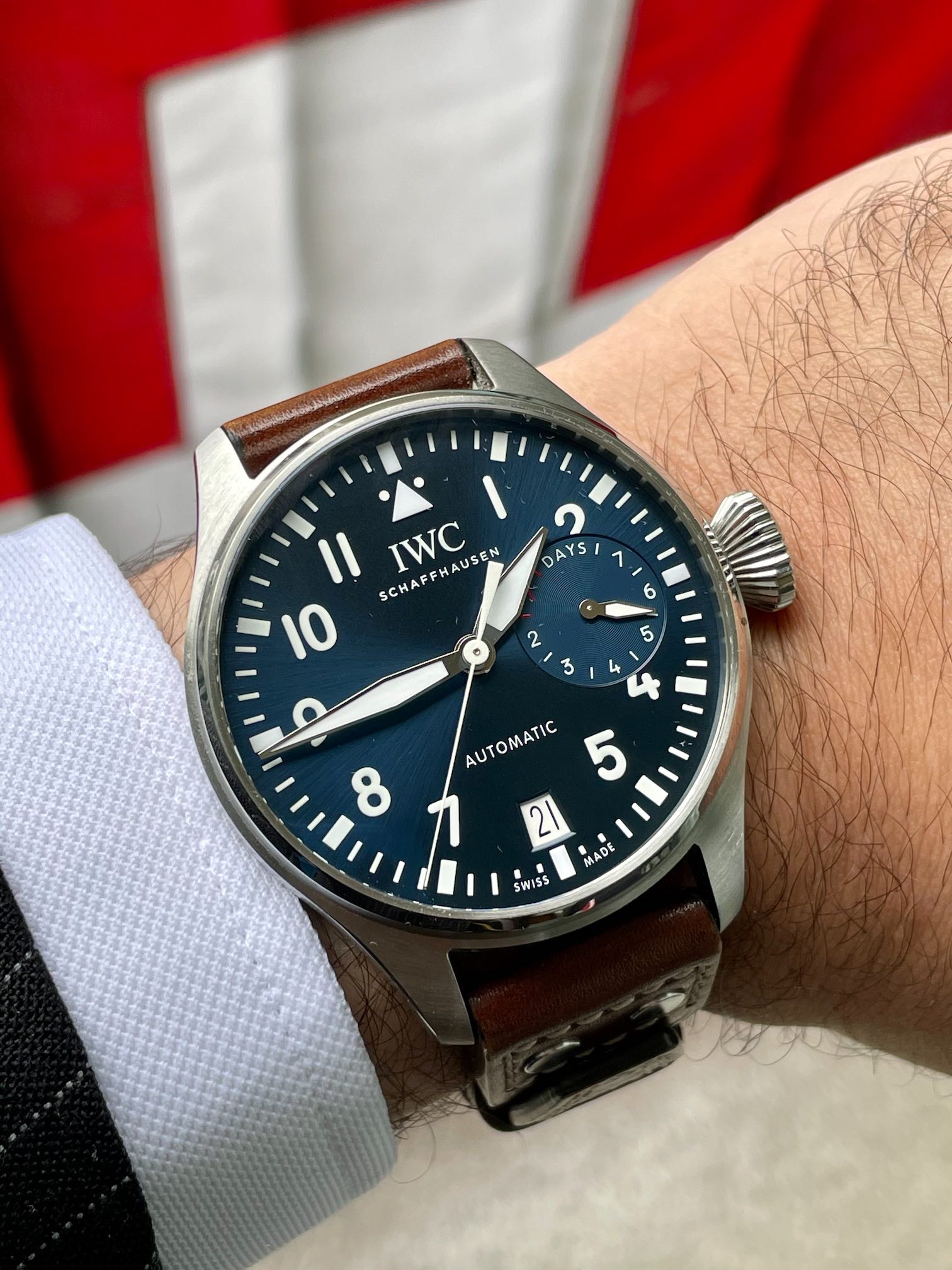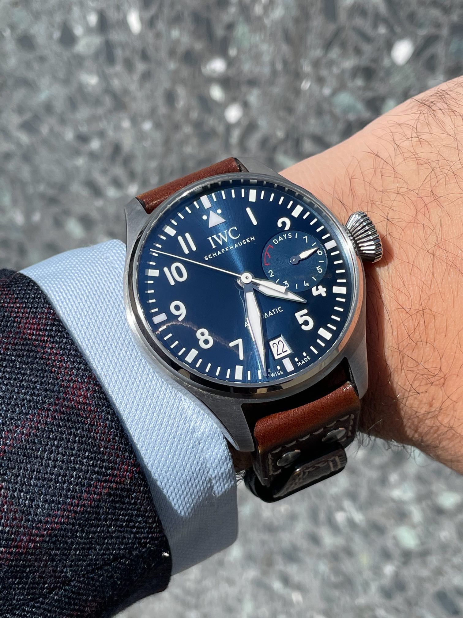 If size is a concern, the new 43mm versions might fit better but, even with a modest wrist, I think that the big pilot makes a statement and is (almost) never out of place.