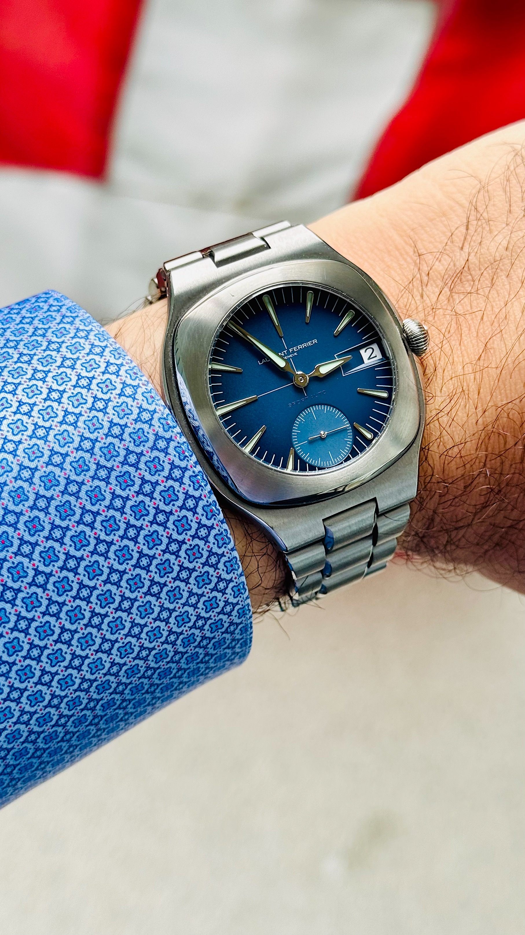 Inside is the LF 270.01 calibre, the Maison’s second automatic calendar movement, exclusively developed by LAURENT FERRIER. This movement, a perfect blend of a tribute to the micro-rotor and natural escapement with a sporty demeanor, is entirely designed, assembled, decorated, and adjusted in-house. It features a unidirectional ball-bearing micro-rotor with a 950 platinum oscillating weight, offering over 72 hours of power reserve.