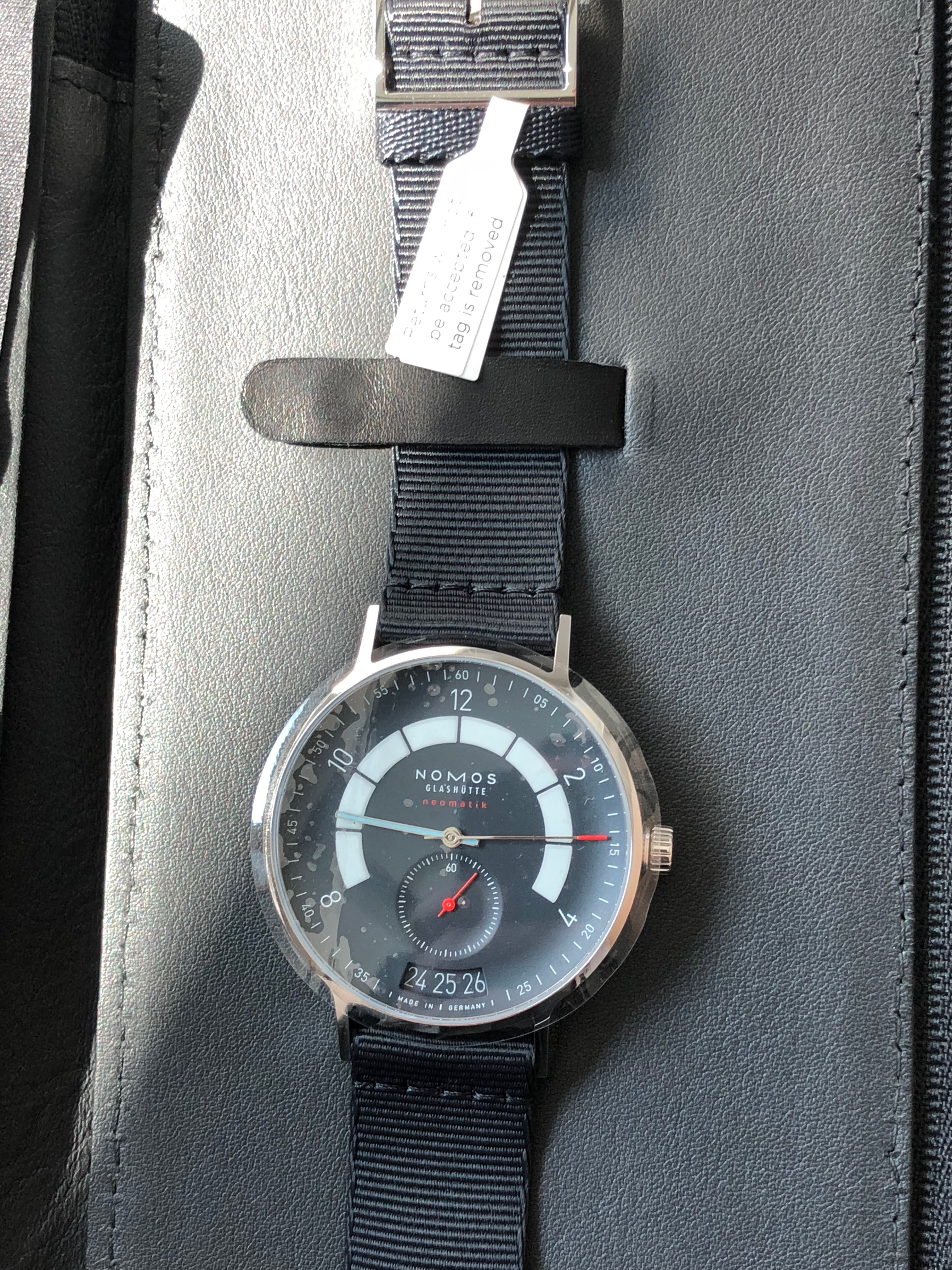 The online retailer Mr Porter launched the Nomos Autobahn the same day it was announced in Basel and as a result of this ??ber fast launch we now have one of the firsts Nomos Autobahn to hit the market. In case you wonder yes we will be visiting Baselworld wearing a watch announced there!