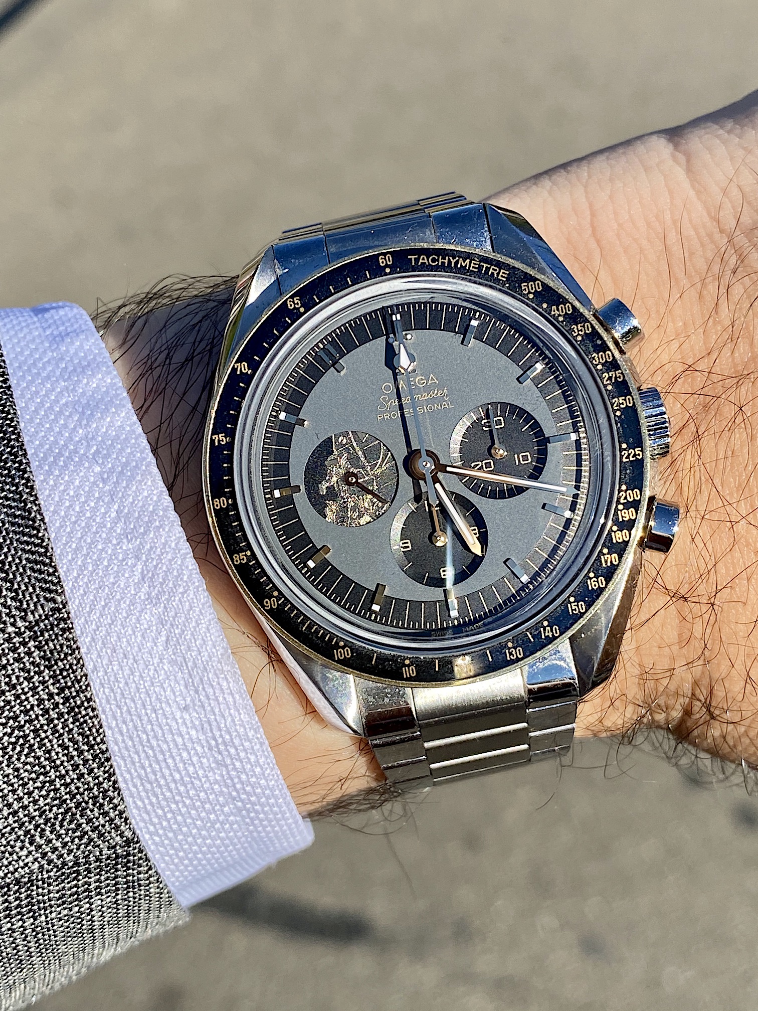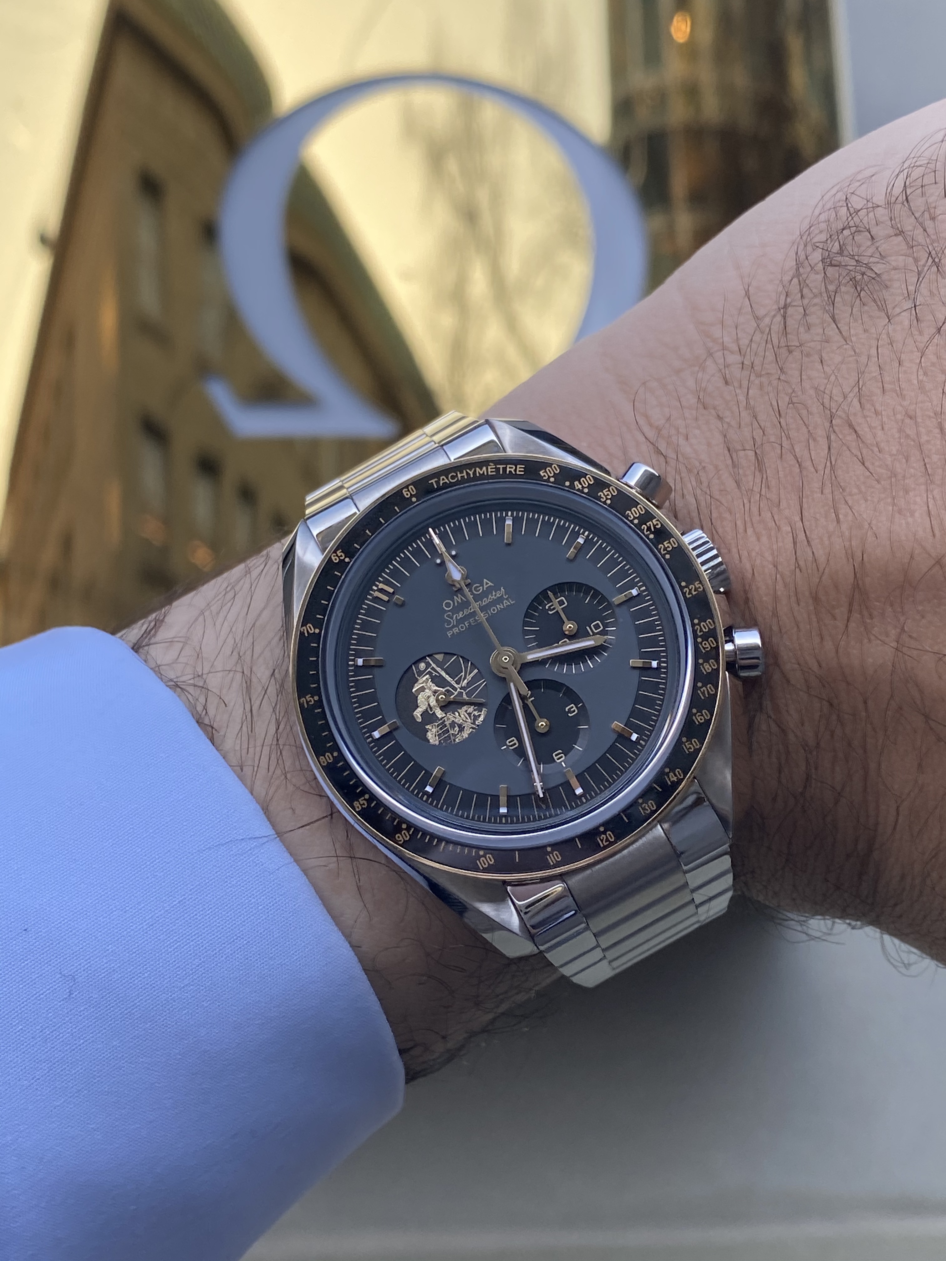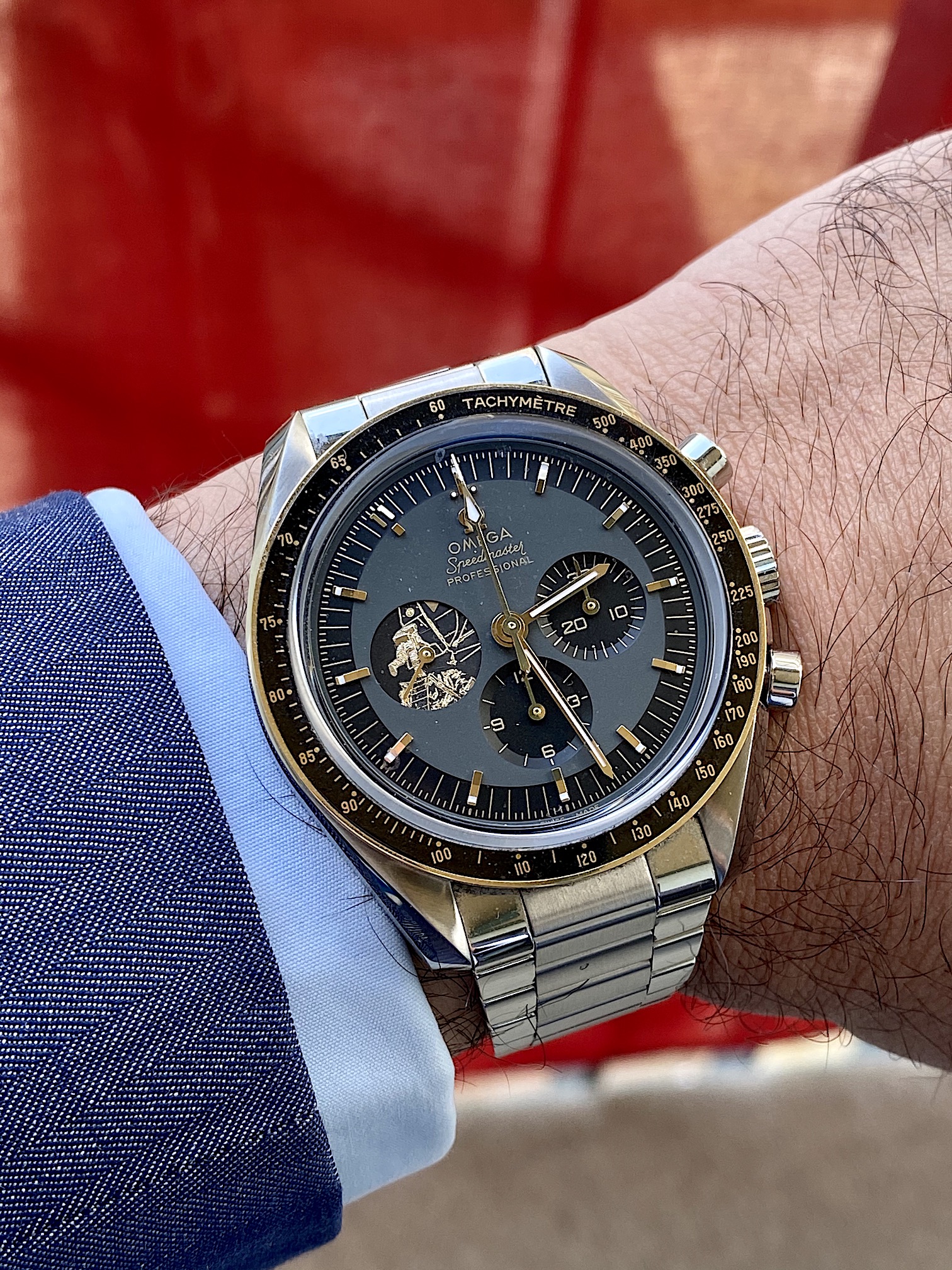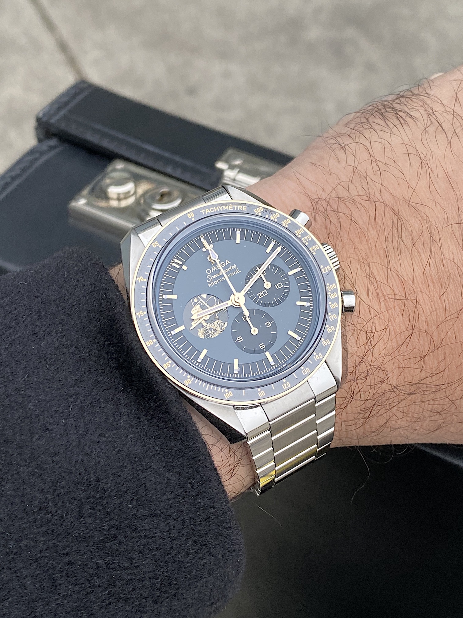 In summary, we found this commemorative speedmaster to be exactly what speedmaster enthusiast wanted: a very distinct design, a new gold alloy, new bracelet and updated METAS certified movement. An excellent choice.