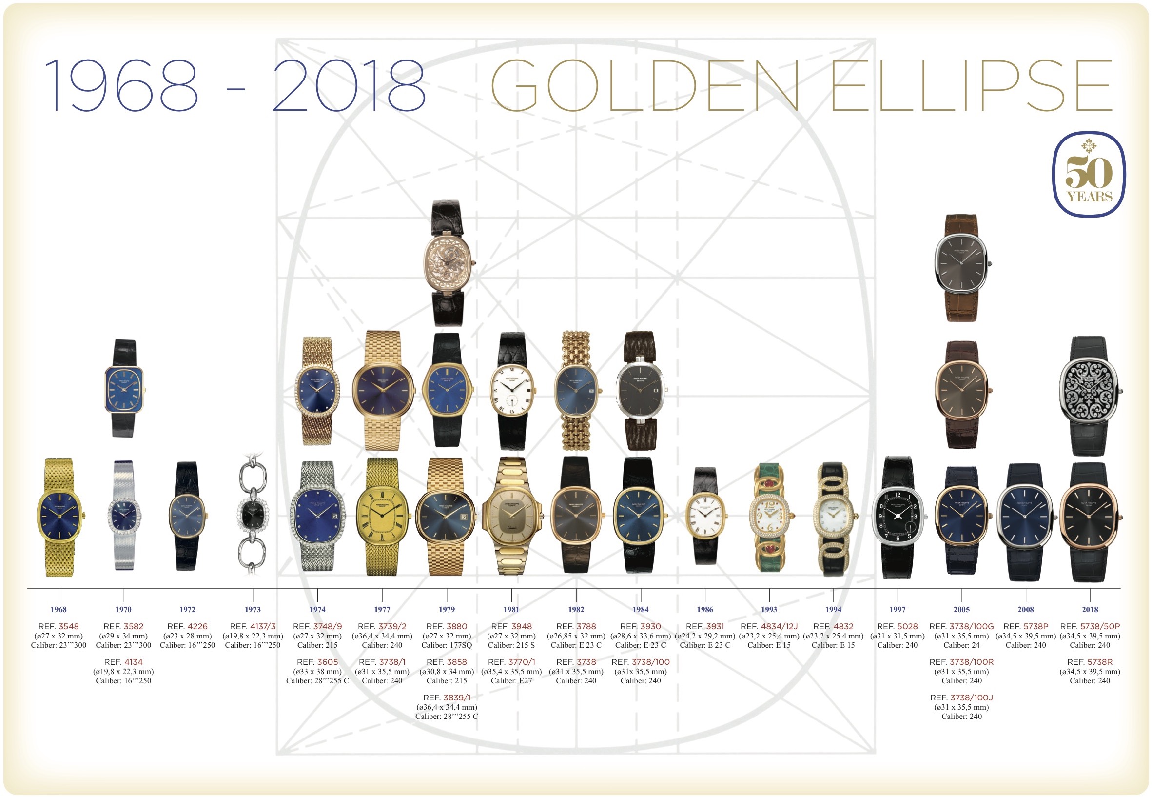According to Patek the elips is "An elliptical case, between a circle and a rectangle. A dial in blue gold, with gold hands and hour markers floating over its depths. When it first appeared in 1968, Patek Philippe’s Golden Ellipse was a bold departure from traditional watch shapes. But far from bowing to fashion, this innovative watch had a sense of inner harmony that was very pleasing to the eye. Its design was inspired by the principle of the “golden section” discovered by the ancient greek mathematicians. This “divine” proportion, expressed as a ratio of 1 / 1.6181, forms the basis of some of history’s greatest works of art and architecture.
