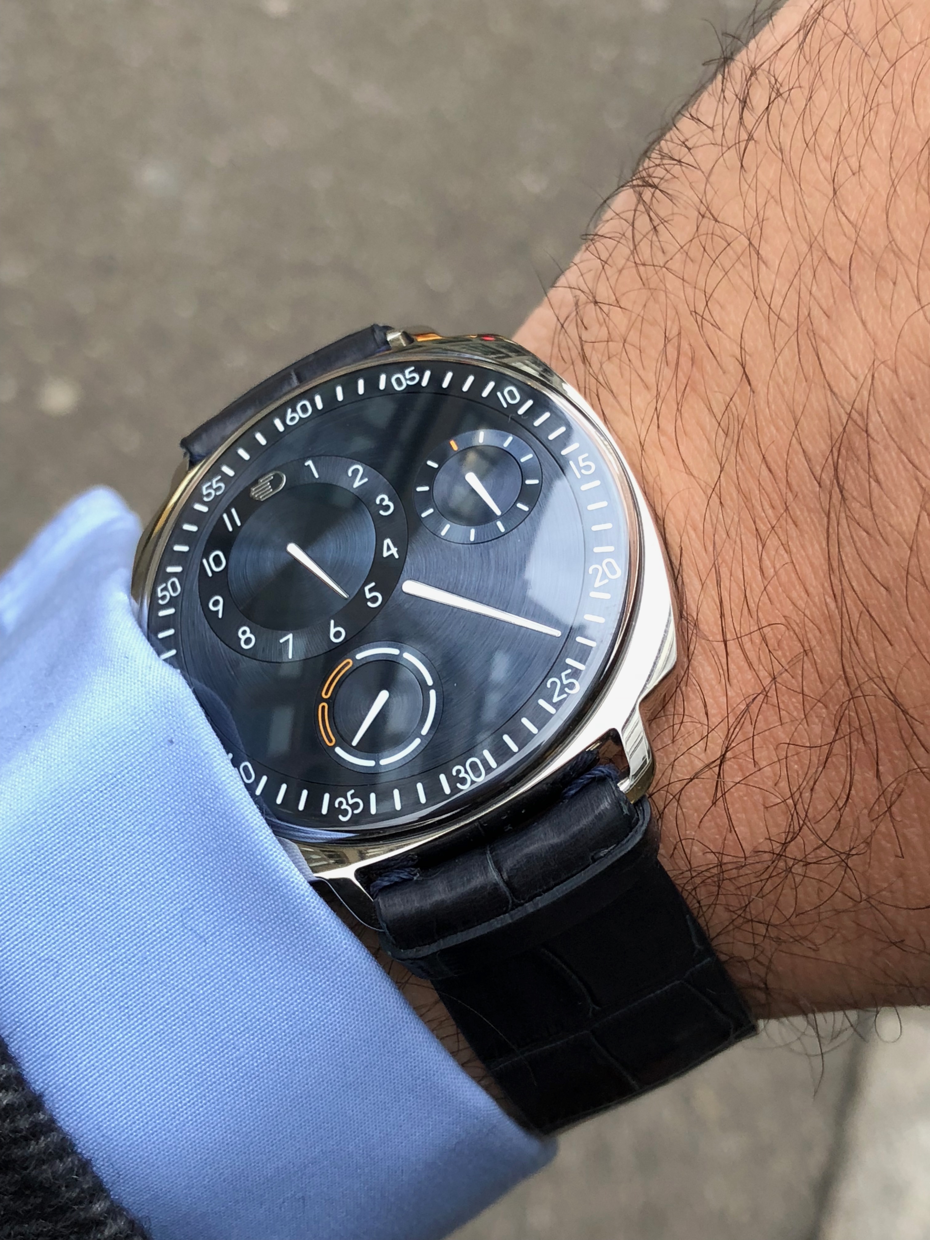 The watch is indeed very elegant and legible. Suitable for the boardroom and works very well on a suit. The round version is somehow more casual.